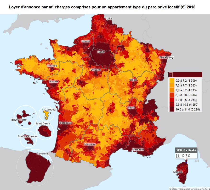 Pendant ce temps, le parc privé lui propose une moyenne de prix des loyers très élevée et donc inaccessible aux plus précaires sauf au prix de sacrifices énormes
