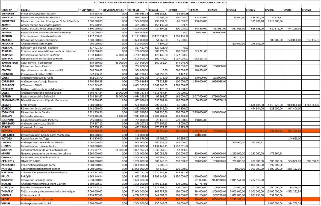 - Concernant Casa di e lingue, c’est un peu plus cocasse. Si le projet est bien listé dans le tableau des opérations pluriannuelles dans le DOB 2021 votée en mars 2021, il a disparu de la liste des autorisations de programmes dont la révision a été votées en juillet 2021.