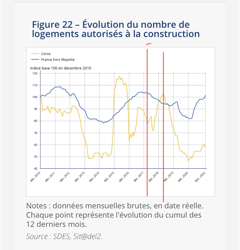 Tout d’abord, la piteuse qualité de notre réseau routier contraint à concentrer les logements autour des bassins d’emplois (grand Bastia et grand Ajaccio).