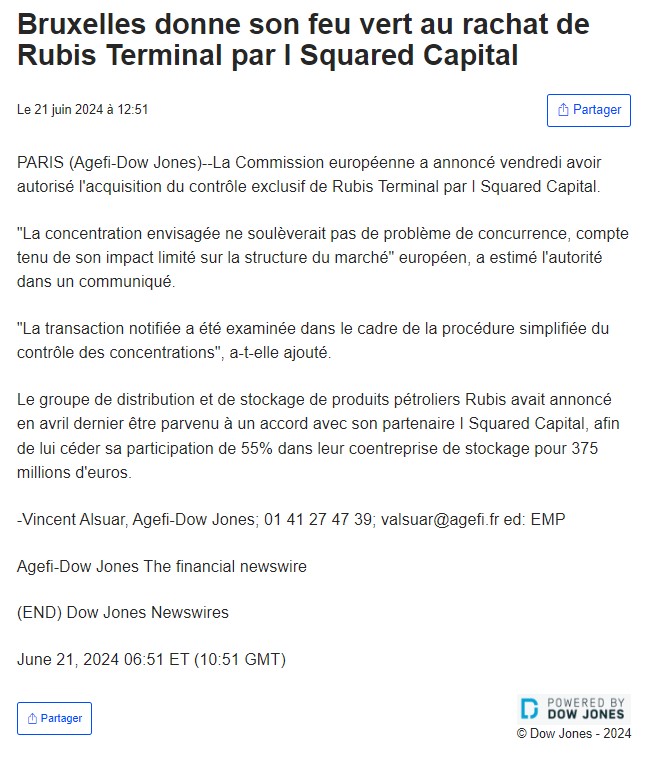 Or, dans la plus totale indifférence au niveau local, Bruxelles vient de donner son feu vert au rachat de Rubis terminal par le fonds d’investissement américain I Squared Capital.
