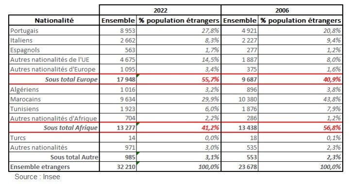 La vraie mutation, c’est l’europĂ©anisation. Les Ă©trangers venus d’Europe sont passĂ©s de 9 687 en 2006 Ă  17 948 en 2022, soit +516 par an en moyenne.
