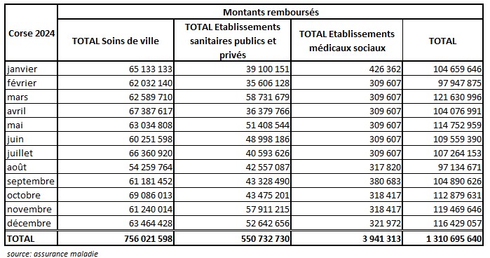 En 2023, l’URSSAF de Corse a encaissé 1,27 milliard d’euros. Or ces cotisations ne financent pas seulement la santé, mais aussi les retraites, le chômage, les allocations familiales.