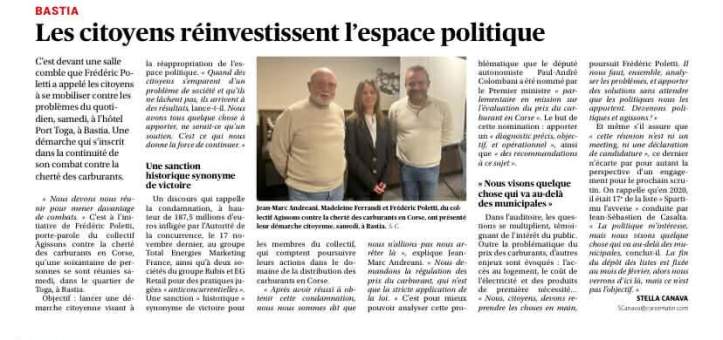 Ce que nous avons prouvé avec le collectif « Agissons contre la cherté des carburants en Corse », c’est que lorsque des citoyens prennent à bras-le-corps un problème, aussi complexe soit-il, qu’ils travaillent sérieusement et ne lâchent rien, les choses finissent par bouger.